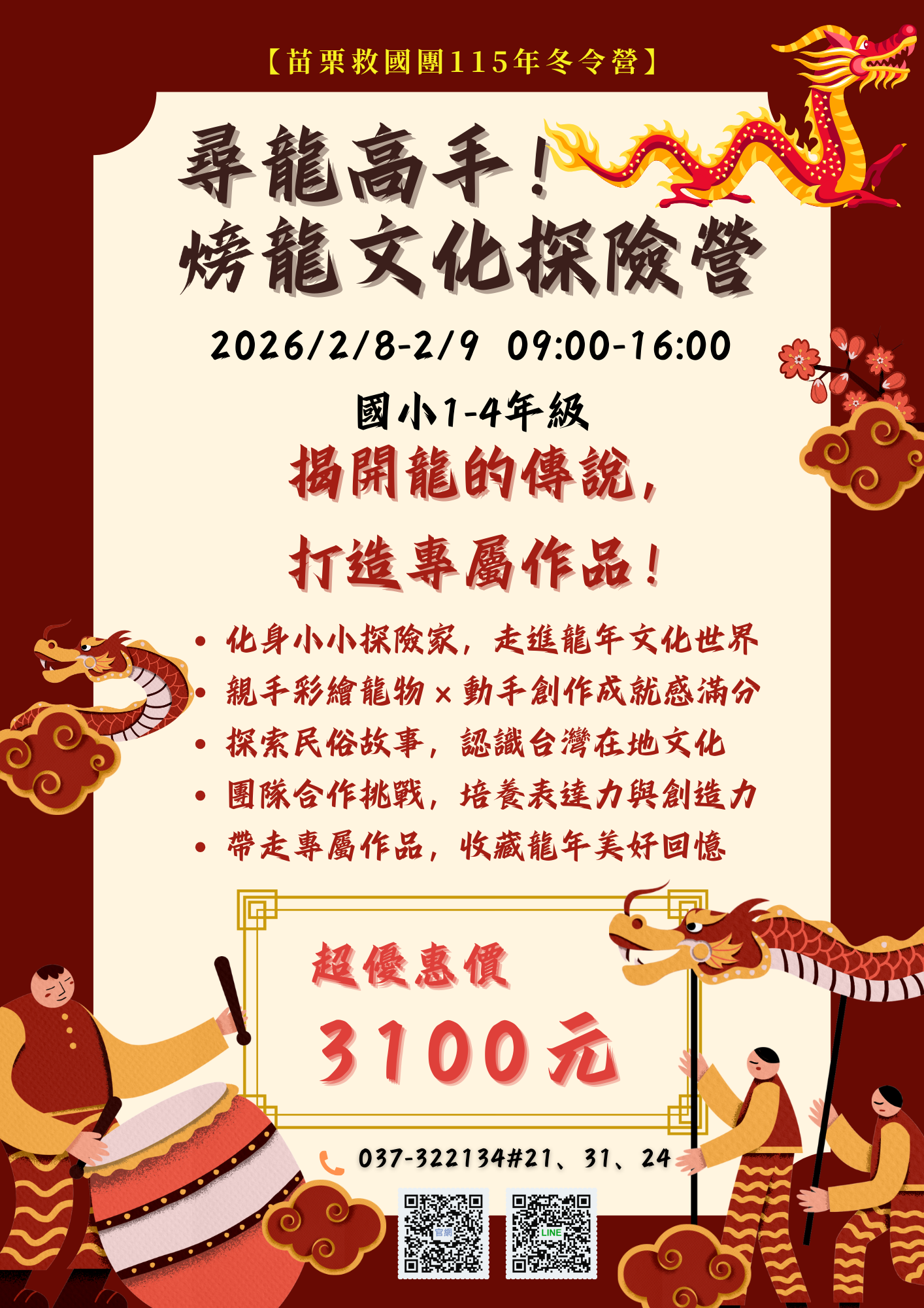 【苗栗救国团115年冬令营】WML01 寻龙高手!火旁龙文化探险营