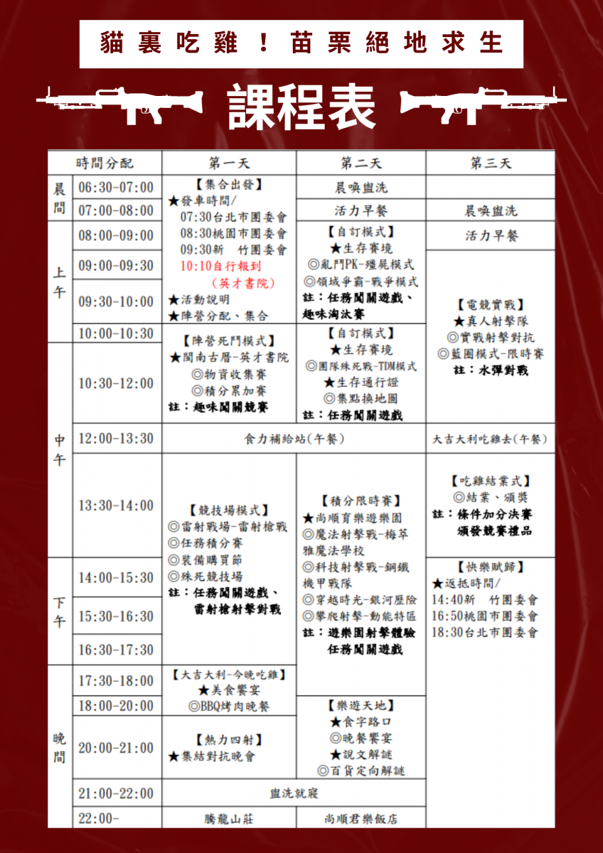 2.跨景点沉浸式冒险,关卡规模全面升级活动横跨尚顺育乐天地、腾龙山庄、英才书院等苗栗话题景点,结合在地观光特色,打造多场域、多关卡的竞技对战体验,冒险感全面拉满。
