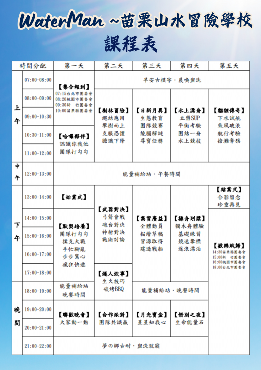 在最新通过的明德水库水域场,挑战SUP立桨-冲浪板上平衡站立、练习在湖边划着独木舟破浪的刺激与清凉、用团队力量共同完成水船竞赛、户外密室解谜、学会亲自动手料理餐食、在团队竞赛中互助分工,让这个暑假不只寓教于乐、更充满综艺娱乐!